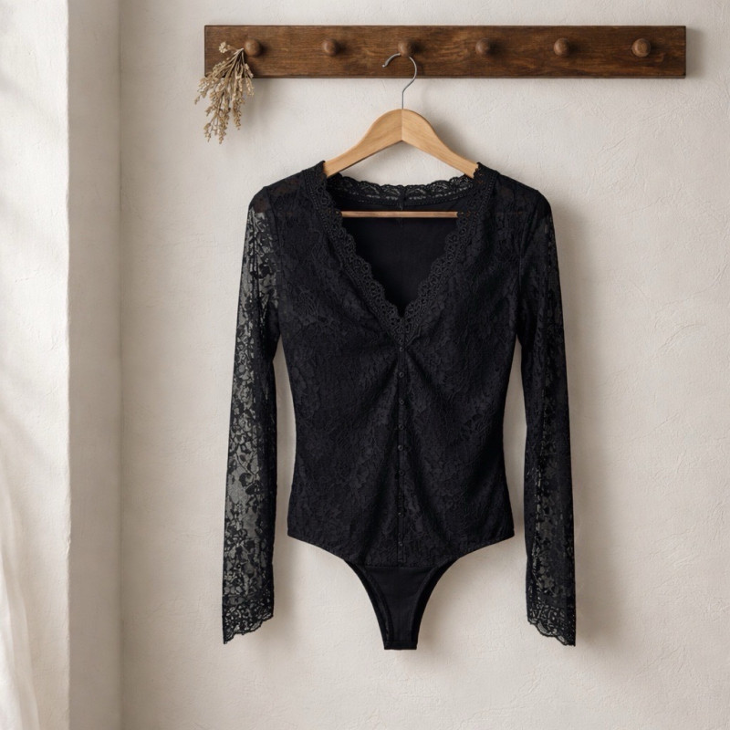 Le body Yséria incarne une féminité affirmée avec une élégance naturelle. Sa dentelle délicate joue subtilement avec la transparence pour dessiner une silhouette raffinée, tout en apportant une touche sophistiquée à chaque tenue.