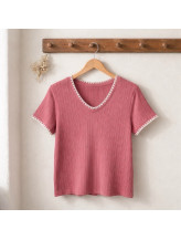 Le col en V féminin avec finition contrastante