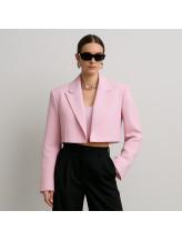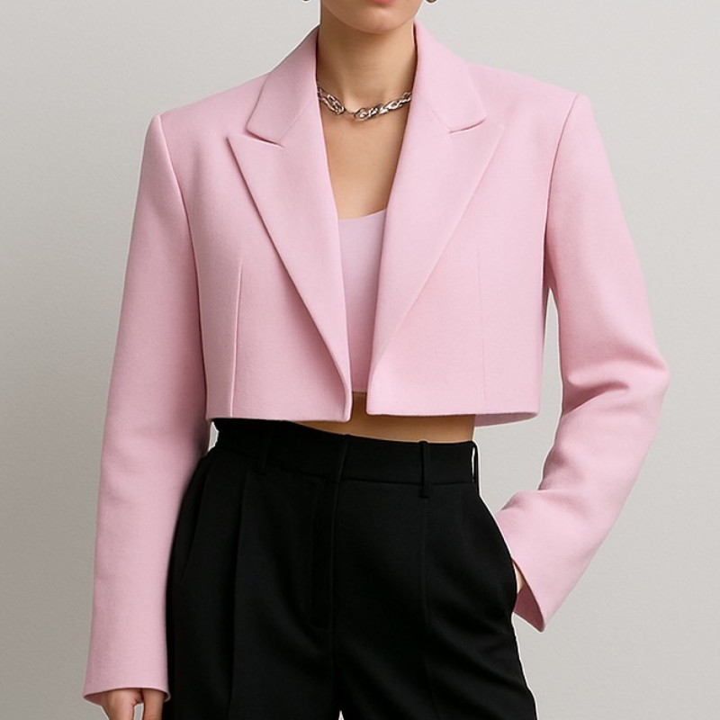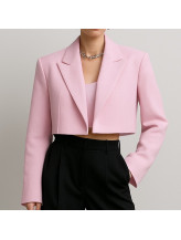 Ce blazer court structure la silhouette avec une élégance contemporaine. Sa coupe nette met en valeur la taille, tandis que ses lignes épurées et son col tailleur apportent une allure affirmée, à la fois moderne et sophistiquée.